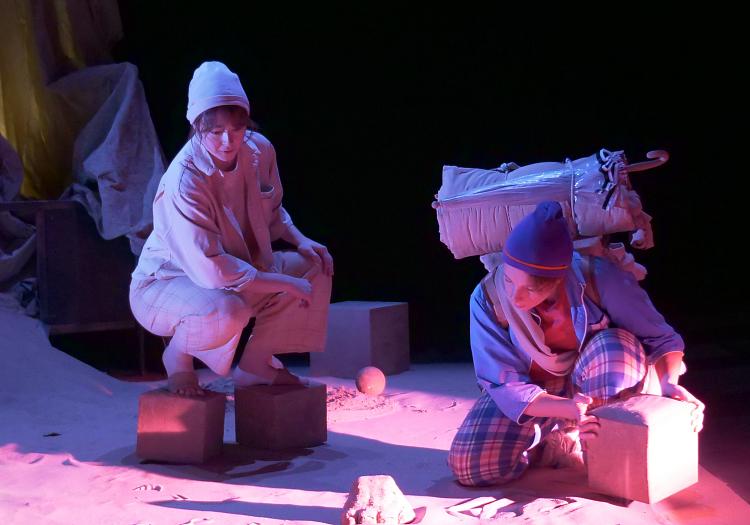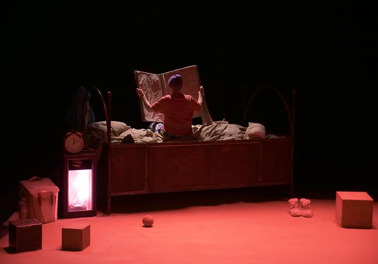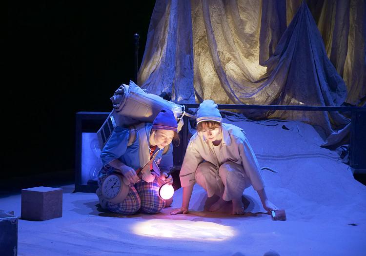 Installée au centre d’un bac à sable, la metteuse en scène et comédienne Lola Naymark, accompagnée de la marionnettiste et plasticienne Coralie Brugier, imagine un spectacle tout en douceur pour aider les tout-petits à cheminer vers le sommeil.